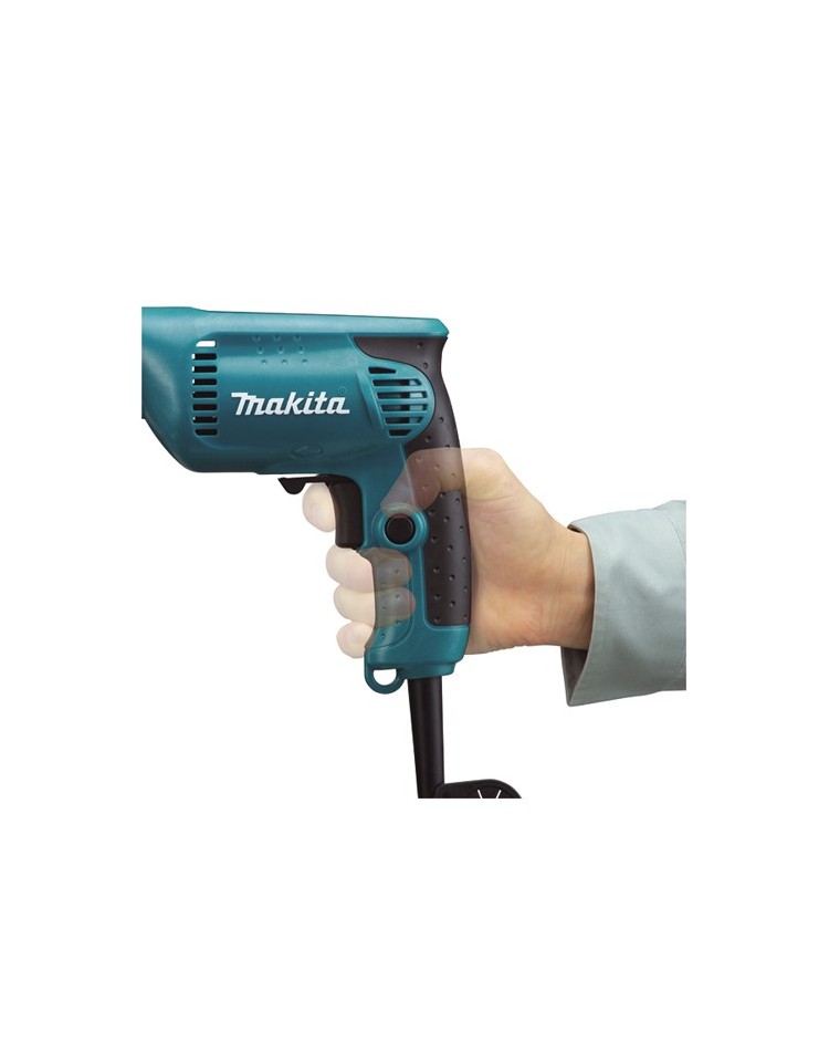 - Façonnage ergonomique à revêtement en caoutchouc et interrupteur surdimensionné facilitant la prise en main et la poussée dans l'axe du foret.
